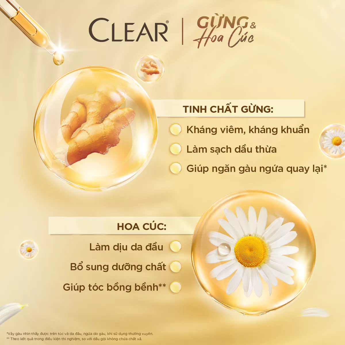 *Vảy gàu & ngứa do gàu nhìn thấy được khi dùng thường xuyên ^Phần tóc sát da đầu (không bao gồm nang tóc) **Theo kết quả thí nghiệm trong phòng thí nghiệm so với dầu gội không chứa chất xả