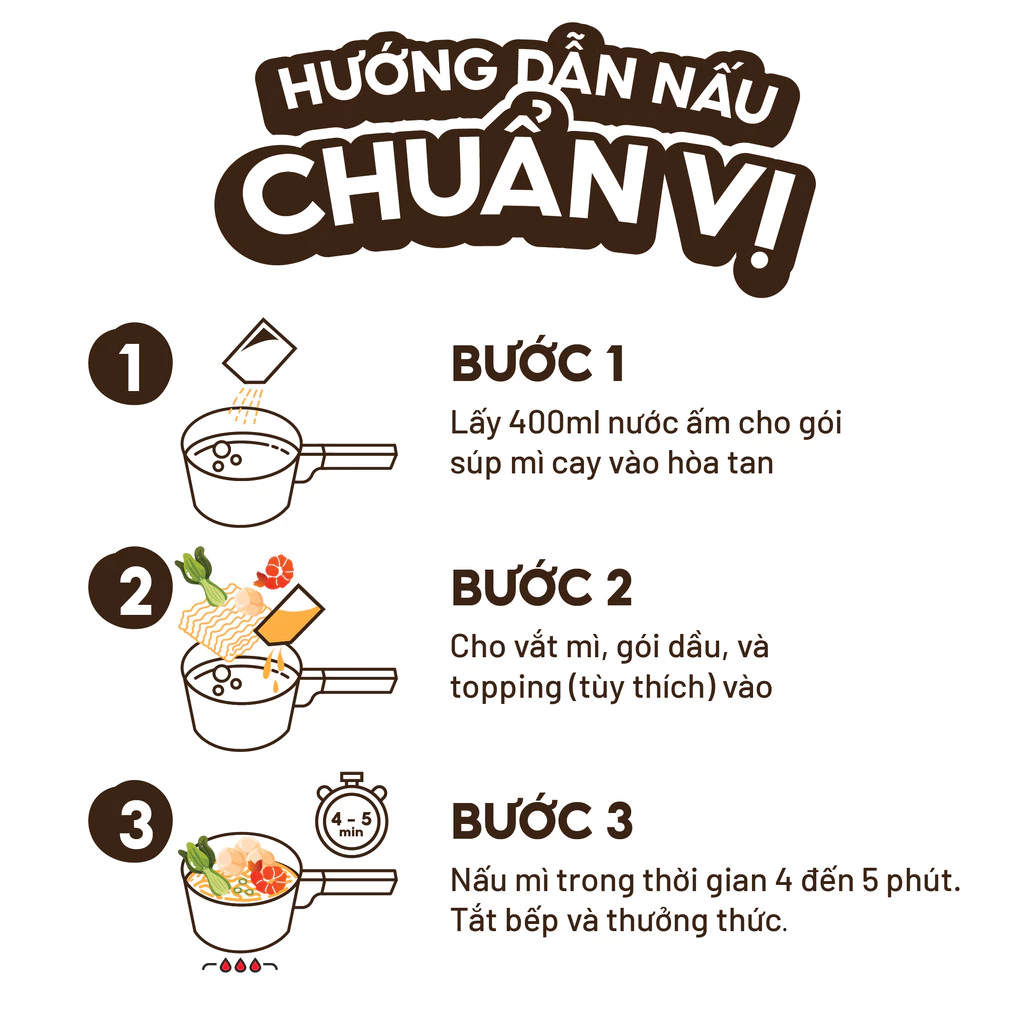 – Mỗi gói sốt ớt độ đi kèm tương đương 2 cấp độ cay (tính trên 400ml nước).